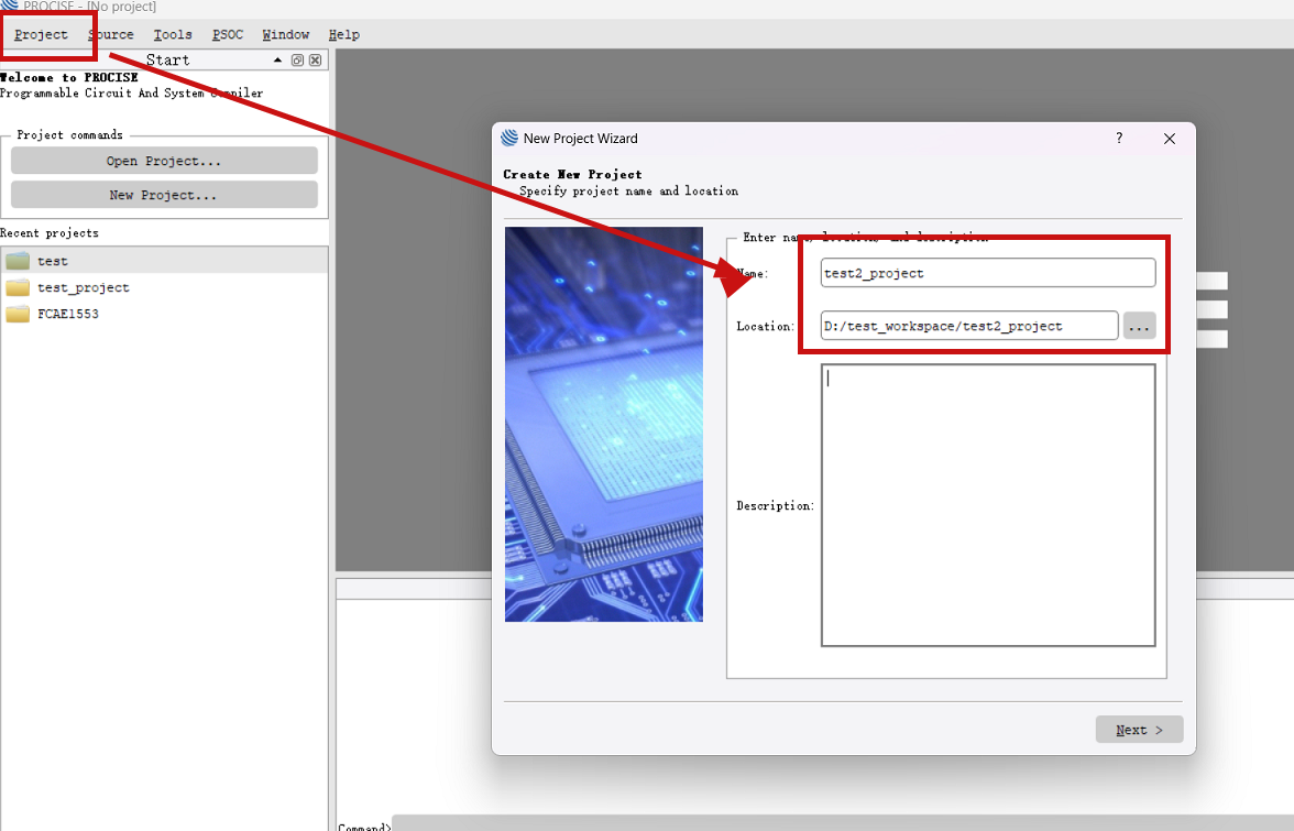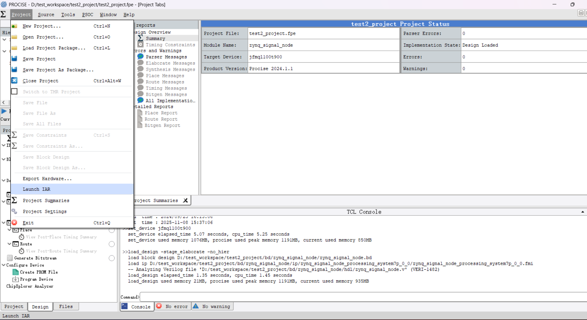 点击【Finish】后procise会自动打开新建的额工程,这时procise的【PSOC】的【From Vivado】可以点击了,打开【From Vivado】