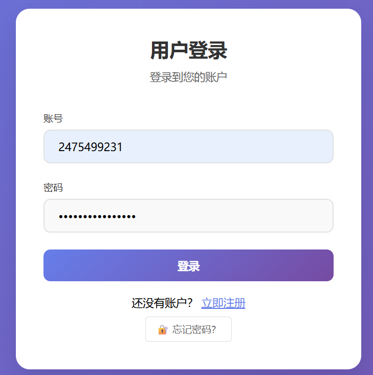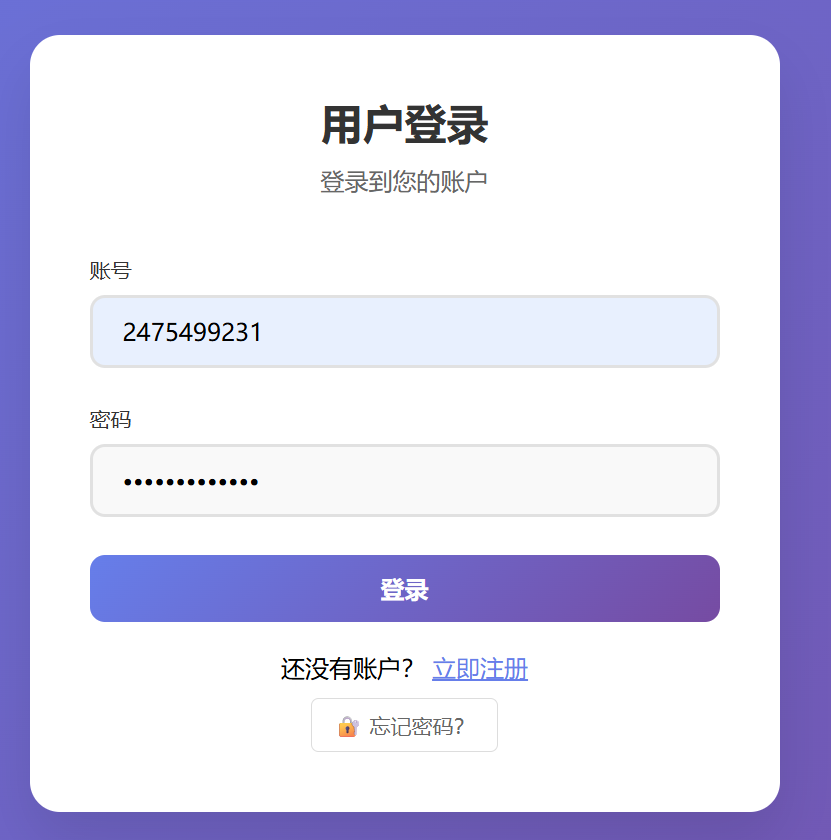 即可进入登录界面,输入刚刚注册好的账号和密码后点击登录
