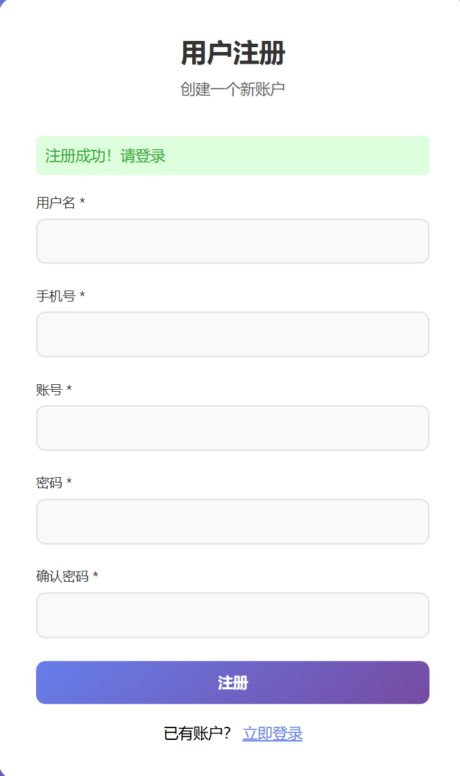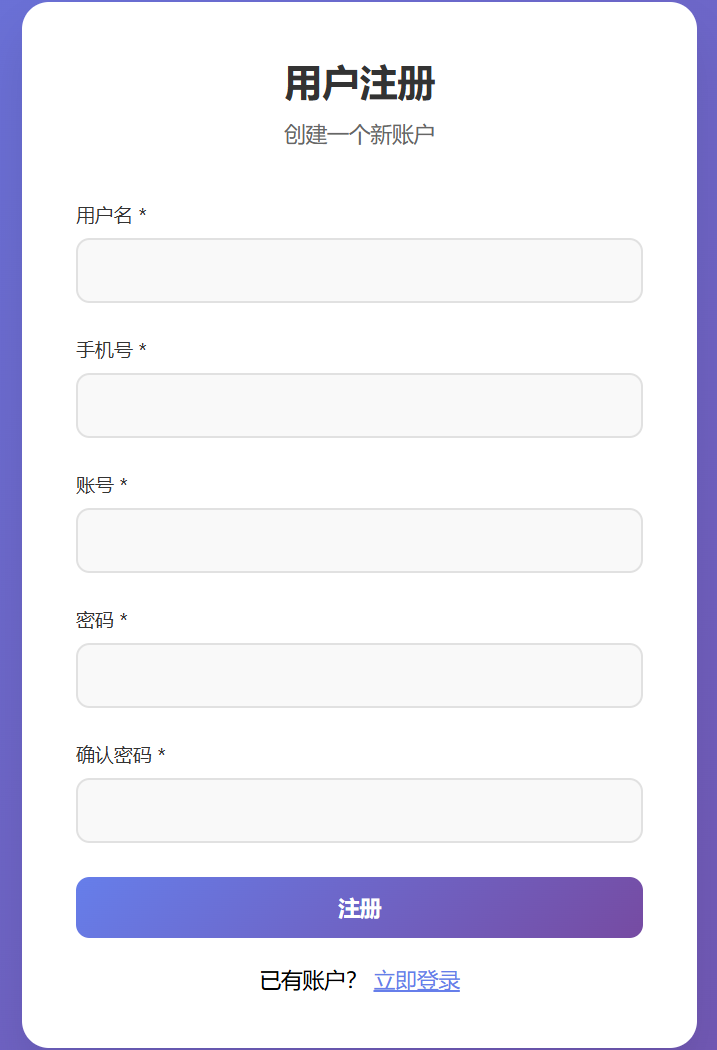 输入http://localhost/user_auth_system/register.php可进入注册界面
