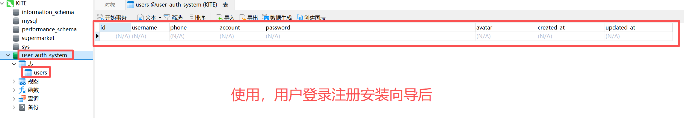你就会发现Navicat Premium 16 里多了一个user_auth_system数据库和一个users表