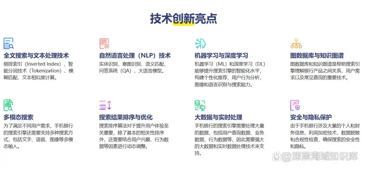 - 多样化数据源整合:支持整合理财产品、网点信息、活动资讯、商城商品、礼品兑换等多种内容,实现统一搜索。