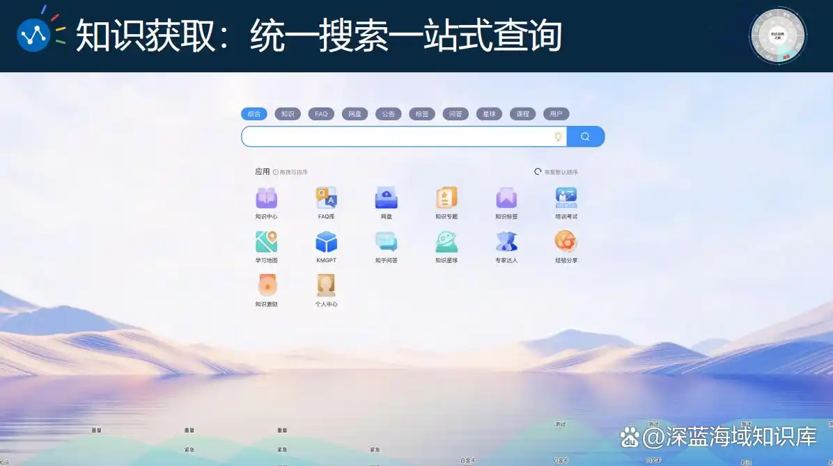 多年来,深蓝海域为银行、政企和国企客户提供专业的智能搜索服务,通过KMPRO平台和个性化解决方案帮助企业打破信息孤岛,实现跨系统的统一检索,让用户找到所需、所想,助力企业构建智能金融服务新生态。