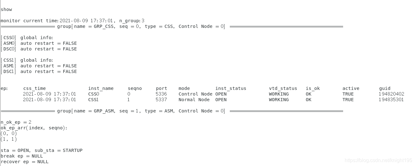 ep: css_time inst_name seqno port mode inst_status vtd_status is_ok active guid ts