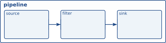 The elements are GStreamer's basic construction blocks. They process the data as it flows downstream from the source elements (data producers) to the sink elements (data consumers), passing through filter elements.