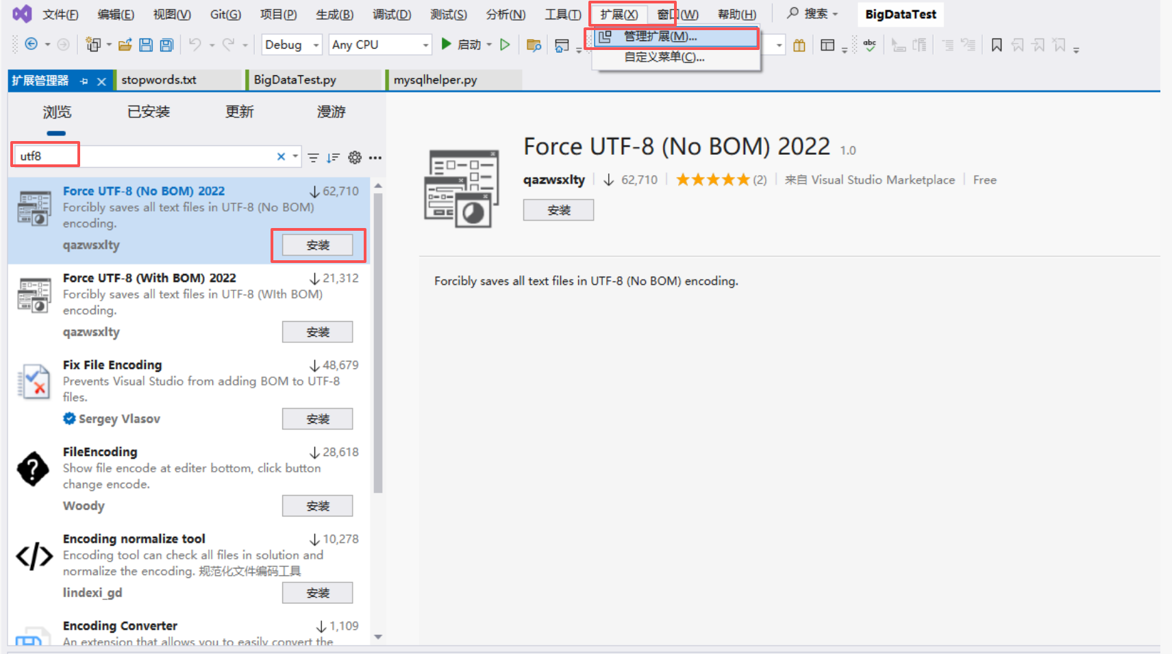 错误原因是由于visual studio编写python代码,默认的编码格式为:GB2312,解决办法也很简单,把这个python文件的编码格式改为utf-8即可。但是问题又来了,visual studio中,怎么改python文件的编码格式呢?