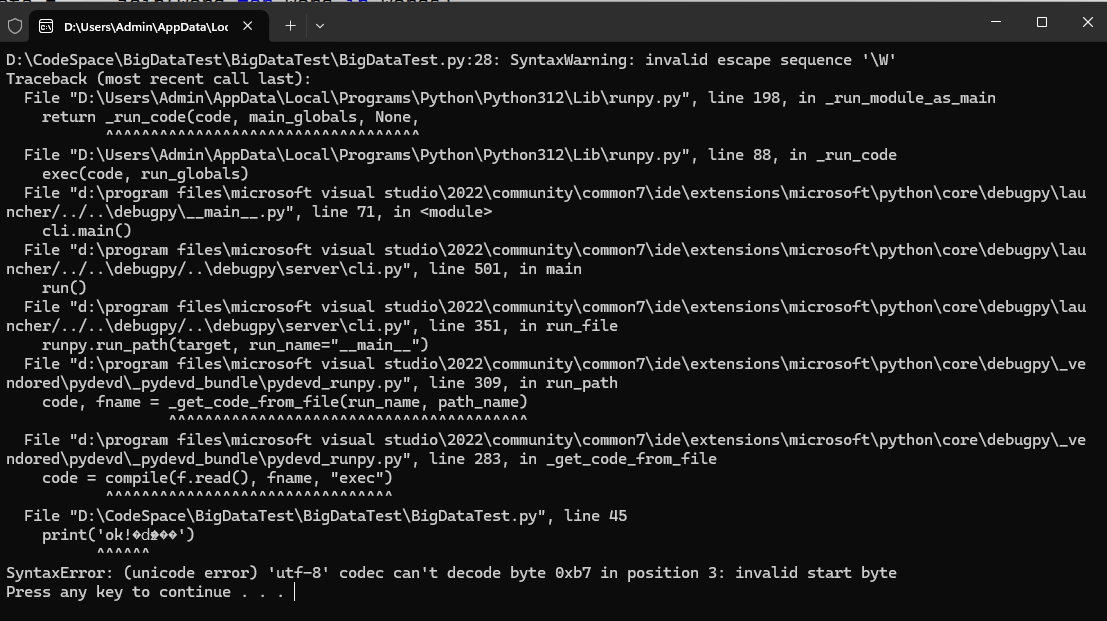 错误信息:SyntaxError: (unicode error) 'utf-8' codec can't decode byte 0xb7 in position 3: invalid start byte
