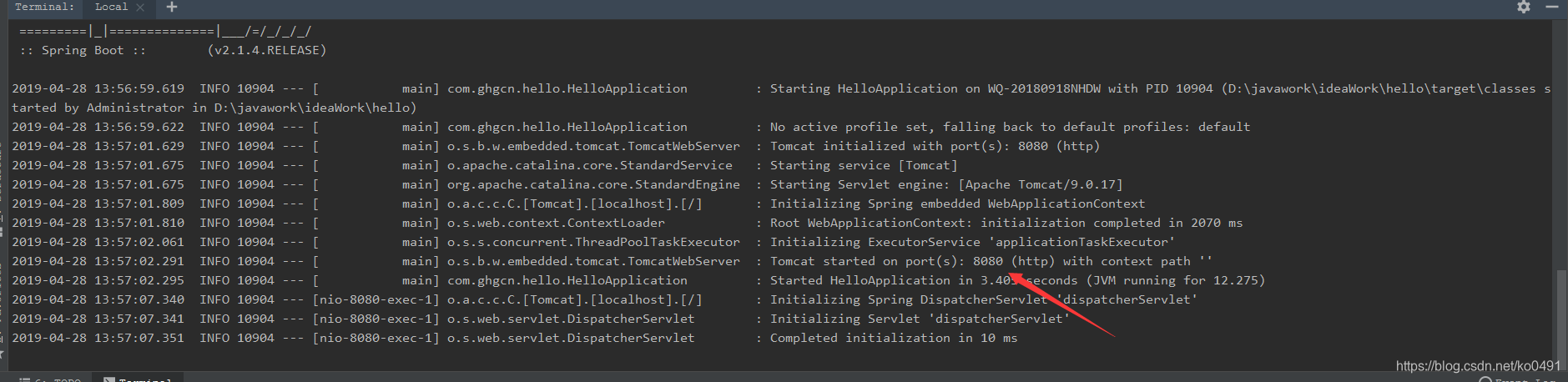 运行HelloApplication或者使用mvn spring-boot:run
