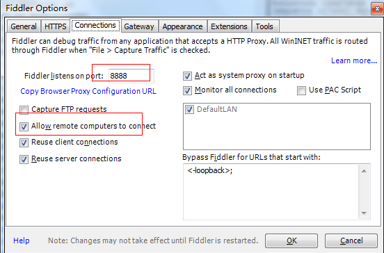 3.3.fiddler设置:Tools》FiddlerOptions》Connections
