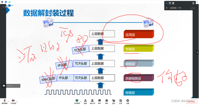上层数据先从应从层(先发出--翻译成二进制语言--连接会话)