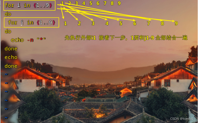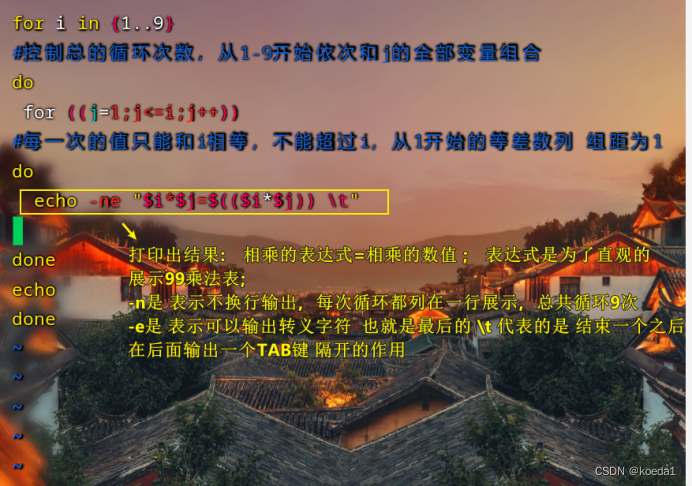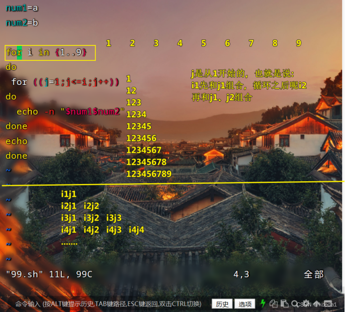 但是99乘法表,不能是9*9的,出来的结果应该是三角形,也就是9行,但是每一行的变量不一行,从1开始递增的行变量