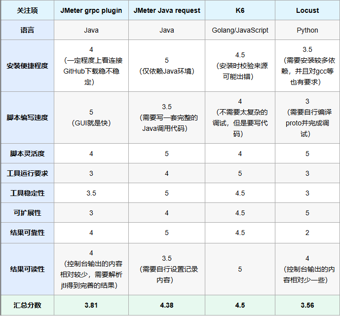 响应时间的话选取的平均响应时间做比较,由于JMeter并没有收集测试执行文件,因此没有90%和95%这类数据,而K6的命令行执行结果自带这两项统计,算是不错的优势。Locust虽然有统计结果,但是因为QPS是瞬时大小。