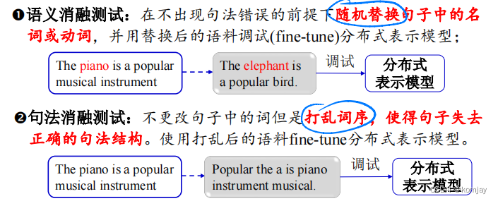 (1)探针任务:目的是测试NLP模型编码语言学特征的能力。其设计了三种探针任务来测试模型的能力:语义分析、句法分析、形态学分析。3中探针任务都比较