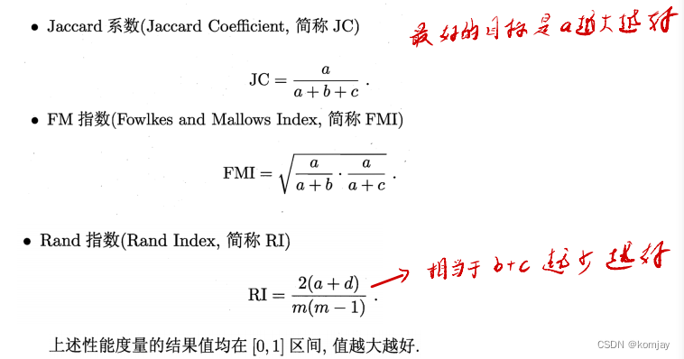 (1)样本-样本度量。在聚类早期,并没有一些集合,于是需要定义样本与样本之间的相似性,来进行聚类,可以使用的度量有: