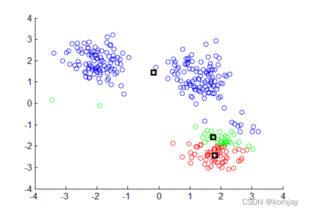 (1)初始化3个中心点,并找到离其分别最近的点