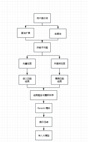 用户提示词 -> 查询扩展 / 自查询 -> 拆分子问题 |