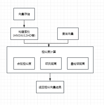 RAG系统的性能高度依赖于高效的向量检索。以下流程图展示了向量数据库中相似度计算的核心原理: