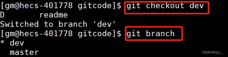 那如何切换到 dev 分支下进行开发呢 使用 git checkout 命令即可完成切换