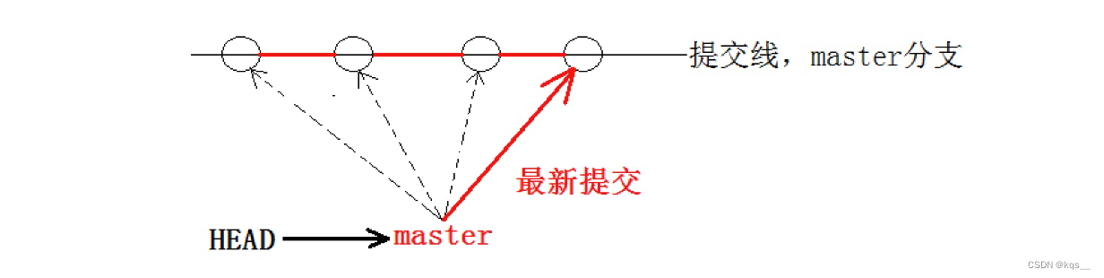 每次提交,master分支都会向前移动⼀步,这样随着你不断提交,master分支的线也越来越长,而HEAD只要⼀直指向master分支即可指向当前分支。
