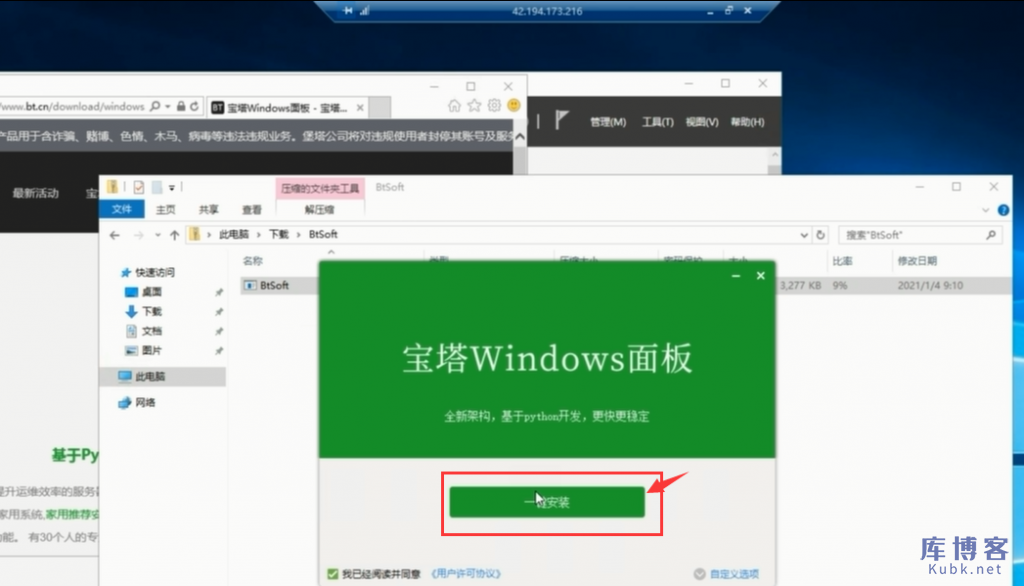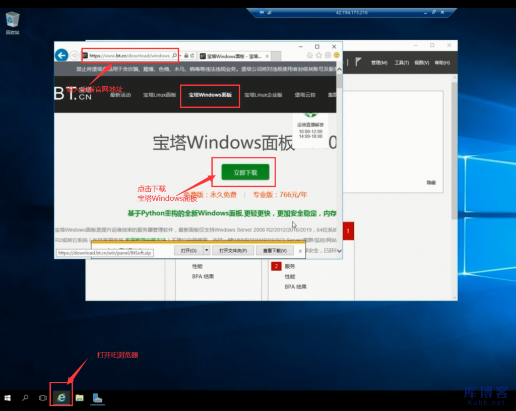 打开云服务器上的IE浏览器,在地址栏输入宝塔面板官网地址:bt.cn