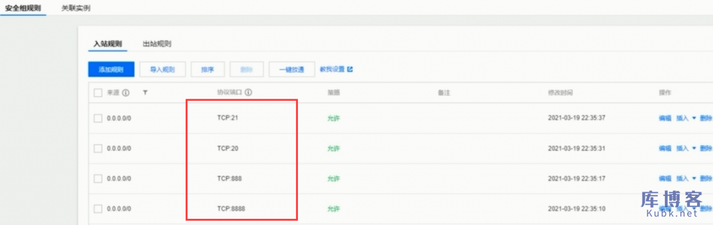 这个时候我们还不能访问宝塔面板的登陆地址,因为还没有按照要求放行相关端口,比如“8888”“3389”“888”“80”“443”“20”“21”。去你的Windows云服务器安全组看一下,把这些端口都放行。