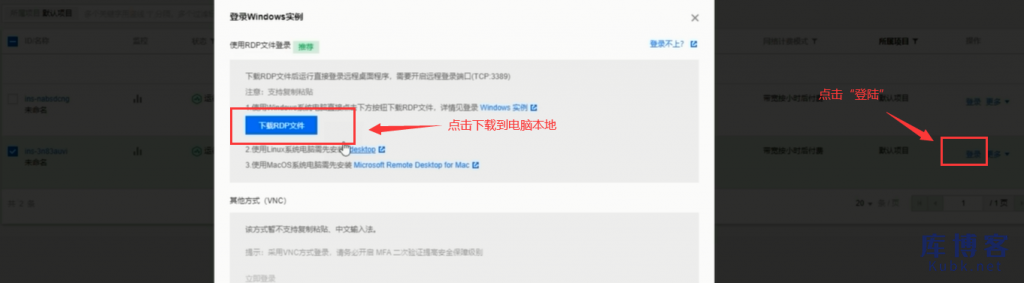这里我们选择用推荐的登陆方式,先下载RDP文件到本地。