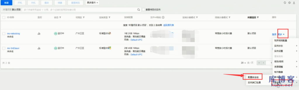在腾讯云的控制台,选择你的这台云服务器,点击“更多”-“安全组”-“配置安全组”