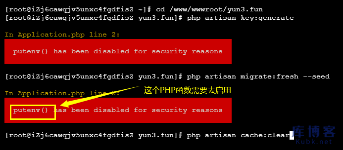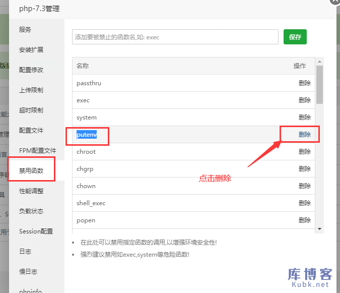 提示: 若这一步出现红色错误内容: 'xxx' has been disabled, 是由于宝塔自动禁用了很多函数, 请到php设置里面启用相应的函数。出现的提示如下图: