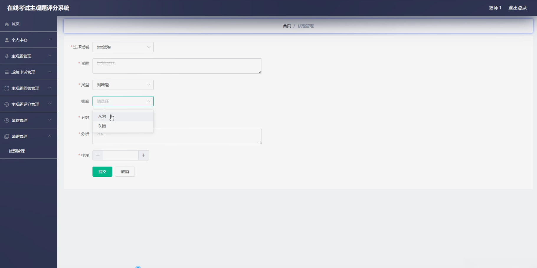 主观题评分是考试中不可或缺的一环,其公正性和准确性直接影响到学生的学习成果和未来的升学发展。目前,线下主观题评分方式存在许多问题,如评分标准不统一、评分过程不透明等,这些问题不仅影响了评分的公正性,也影响了学生的学习积极性和学习效果。因此,开发一款在线考试主观题评分系统,能够有效地解决这些问题,提高评分的效率和公正性,对于学生的学习和发展具有重要的意义。