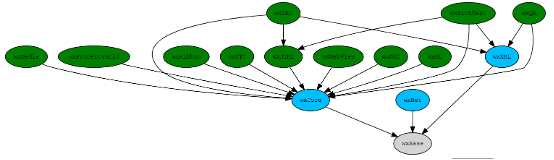 箭头表示“依赖于”,蓝色库都依赖于wxBase库(它们是非GUI库),所有绿色库都依赖于wxCore库(它们是GUI库)