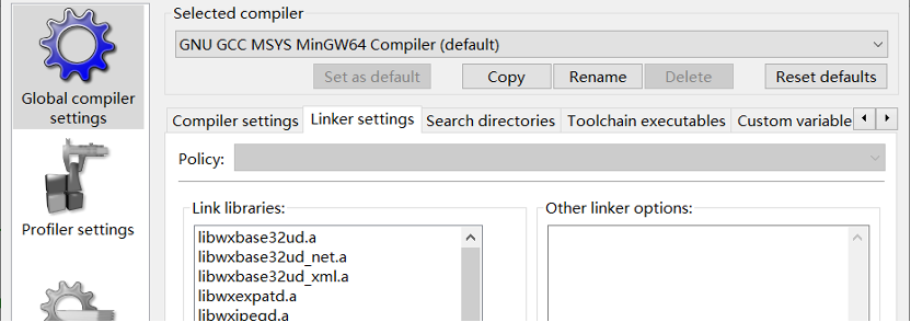 图 3 CodeBlocks编译工具链设置