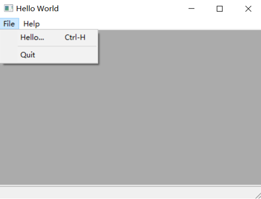 主窗口一般是从wxFrame或wxDialog派生。示例MyFrame派生至wxFrame,并在其构造函数中创建菜单栏和状态栏。