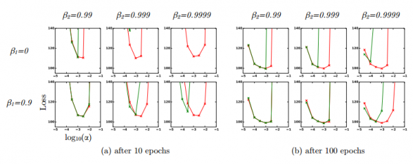 在稀疏矩阵中,为了获得一个可靠的二阶矩估计,我们需要选择一个很小的 β2 而在许多梯度上取均值。然而正好是这种小β2 值的情况导致了初始化偏差修正的缺乏,因此也就令初始化步长过大。