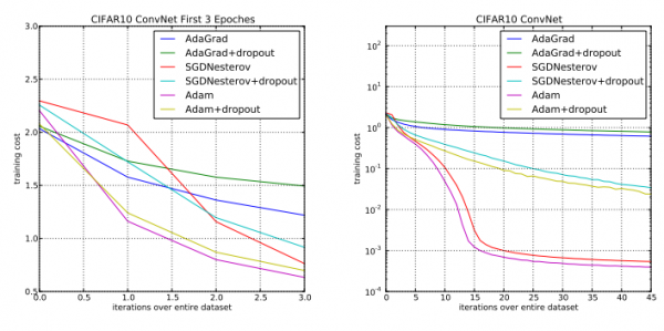 另外,学习率衰减同样可以应用到 Adam 中。原论文使用衰减率 alpha = alpha/sqrt(t) 在 logistic 回归每个 epoch(t) 中都得到更新。