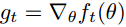 表示 ft(θ) 关于θ的梯度,即在实践步骤 t 下 ft 对θ的偏导数向量。