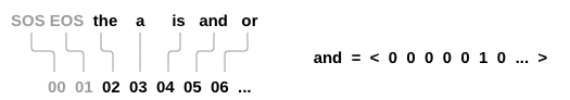 Similar to the character encoding used in the character-level RNN tutorials, we will be representing each word in a language as a one-hot vector, or giant vector of zeros except for a single one (at the index of the word). Compared to the dozens of characters that might exist in a language, there are many many more words, so the encoding vector is much larger. We will however cheat a bit and trim the data to only use a few thousand words per language.