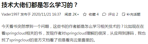这个问题我曾经也很好奇过,那些成为技术大佬的人当初是怎么学习,以及怎么成长过来的,因为我相信他们也是从 0 开始的,也会经历困难期之类的。或许,站在大佬们的“肩膀上”,可以走的更远。