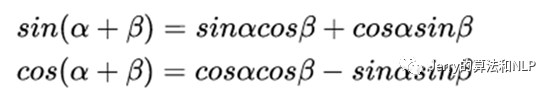 使用正余弦函数进行embeddings的好处在于可以捕捉到前后信息的一个相对位置,数学依据当然就是和差化积公式了