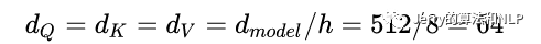 = 512,h = 8,所以在 scaled dot-product attention 里面的