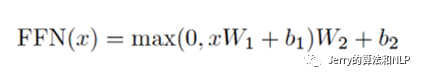 在位置全链接前馈网络等价于先做了一层感知机加上RELU函数在加上一层感知机