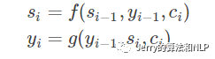 其中s是输出RNN中的隐藏层(隐藏状态),C代表之前提过的语义向量,yt−1表示上个时间段的输出,反过来作为这个时间段的输入。而g则可以是一个非线性的多层的神经网络,产生词典中各个词语属于yt的概率。(这个g的设计其实也是一个关键,可以根据自己的需要设计各种类型NN来实现所需要的效果)