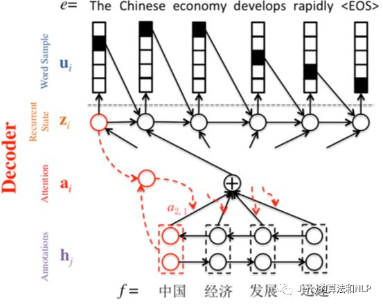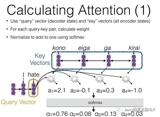 如果拿机器翻译来解释这个分心模型的Encoder-Decoder框架更好理解,比如输入的是英文句子:Tom chase Jerry,Encoder-Decoder框架逐步生成中文单词:“汤姆”,“追逐”,“杰瑞”。在翻译“杰瑞”这个中文单词的时候,分心模型里面的每个英文单词对于翻译目标单词“杰瑞”贡献是相同的,很明显这里不太合理,显然“Jerry”对于翻译成“杰瑞”更重要,但是分心模型是无法体现这一点的,这就是为何说它没有引入注意力的原因。