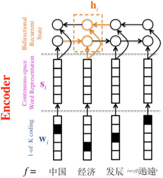 将两个隐层状态进行合并得到hi,可以看到hi可以很好的表示压缩后的前向和后向信息,并且更加关注xi附近的信息。