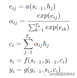 衡量完相似度后,进行softmax归一化输出概率α,根据各自匹配程度(需要关注的程度)阿尔法的值然后对原来的hj进行带权重的线性叠加,形成根据si-1而得到的ci(这个ci如果不引入attention机制的情况下是不会改变的)然后yi的计算就根据后面两步的计算而水到渠成啦