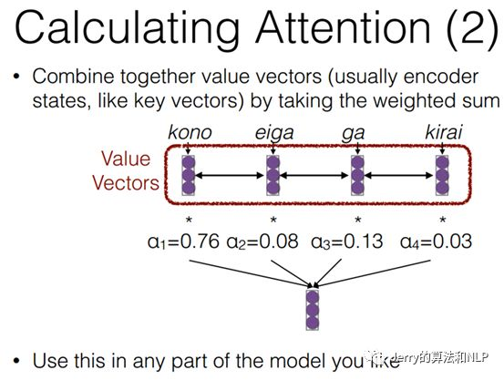 算出概率后在和Value-vector中的进行一个带权重的线性叠加,最后预测出我是需要针对哪几个向量来进行加attention着重关注。