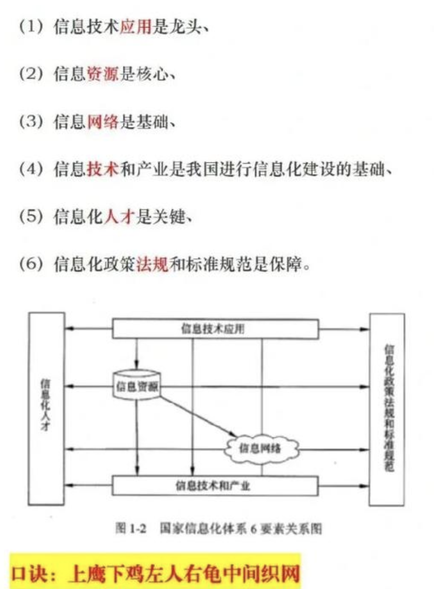 信息化政策法规和标准规范:是国家信息化快读、有序、健康和持续发展的保障。