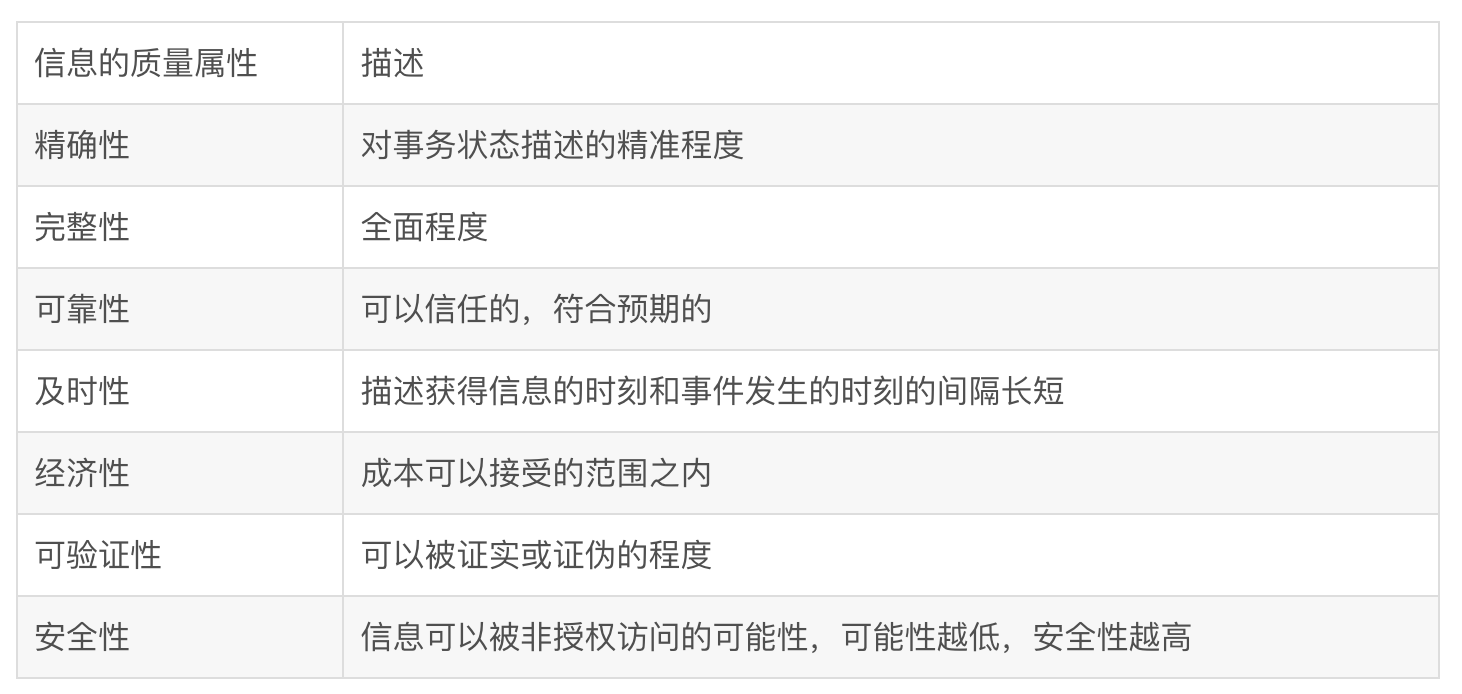 4、由于获取信息满足了人们消除不确定性的需求,因此信息具有价值,而价值的大小决定于信息的质量,这就要求信息满足一定的质量属性。
