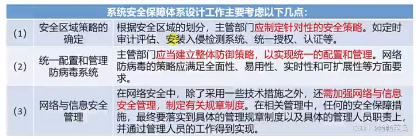 构建信息安全保障体系框架应包括技术体系、组织机构体系和管理体系等三部分。信息安全架构设计的三大要素是人、管理和技术手段。