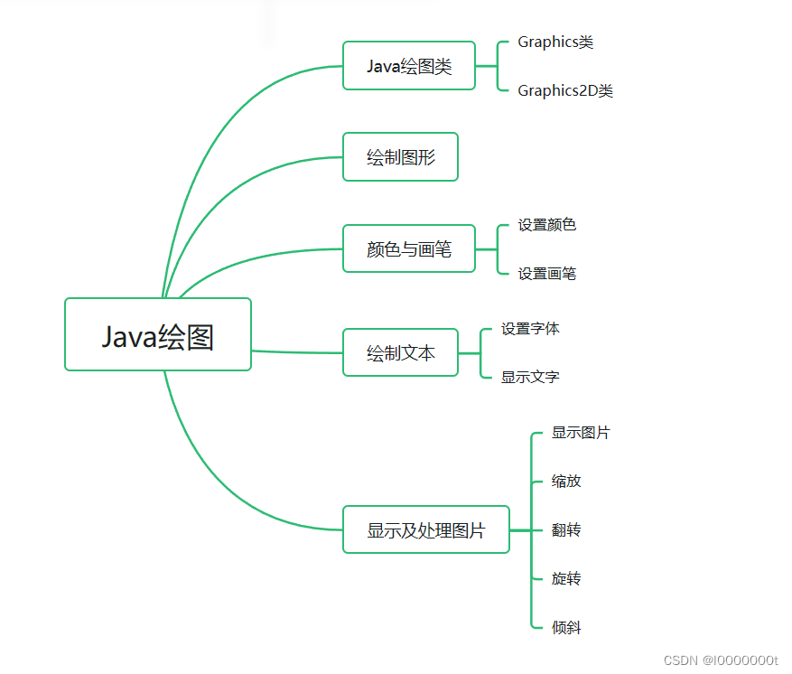 Java 可以分别使用Graphics 类和 Graphics2D 类绘制图形,Graphics类使用不同的方法实现不同图形的给制。例如,drawLine0方法可以绘制直线,drawRectO方法用于绘制矩形,drawOval0方法用于绘制椭圓形等。
