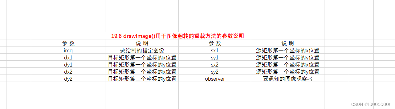 图像的翻转需要使用drawImage()方法的另一个重载方法。语法如下: