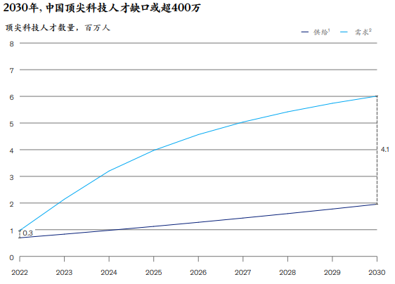 麦肯锡公司发布的一份报告预计,到2030年,中国对熟练AI人才的需求将增长至2022年的6倍。
